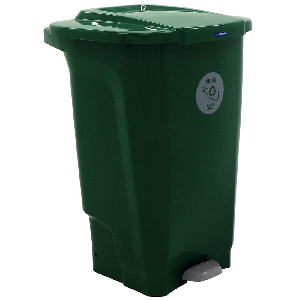Lixeira para Coleta Seletiva com Pedal Tramontina T-Force em Polipropileno Verde - 100 L