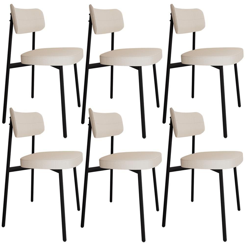 Kit 06 Cadeiras Estofada Para Sala De Jantar Astrid Preto C01 Linho Areia - Lyam Decor