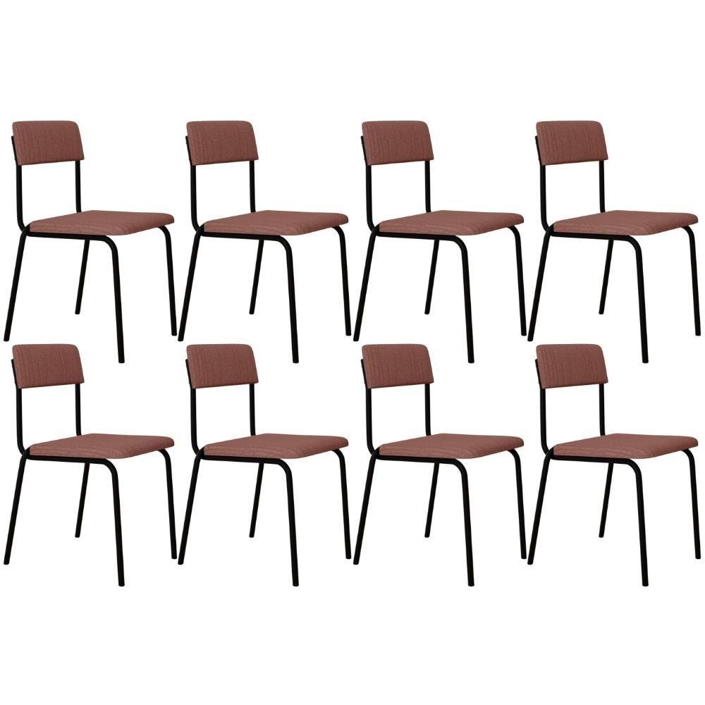 Kit 08 Cadeiras Estofada Para Sala De Jantar Sense Preto C01 Linho Rosa - Lyam Decor