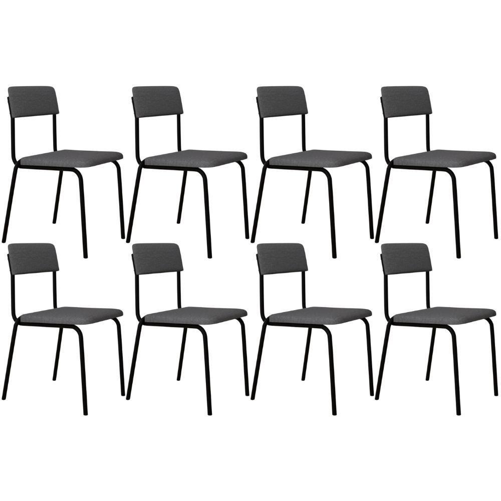 Kit 08 Cadeiras Estofada Para Sala De Jantar Sense Preto C01 Linho Cinza Claro - Lyam Decor
