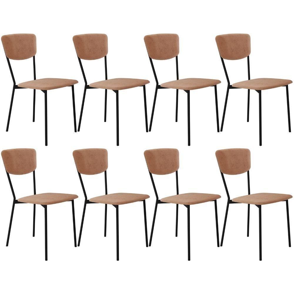 Kit 08 Cadeiras Estofada Para Sala De Jantar Liora Preto C01 Courino Terra Rosê - Lyam Decor