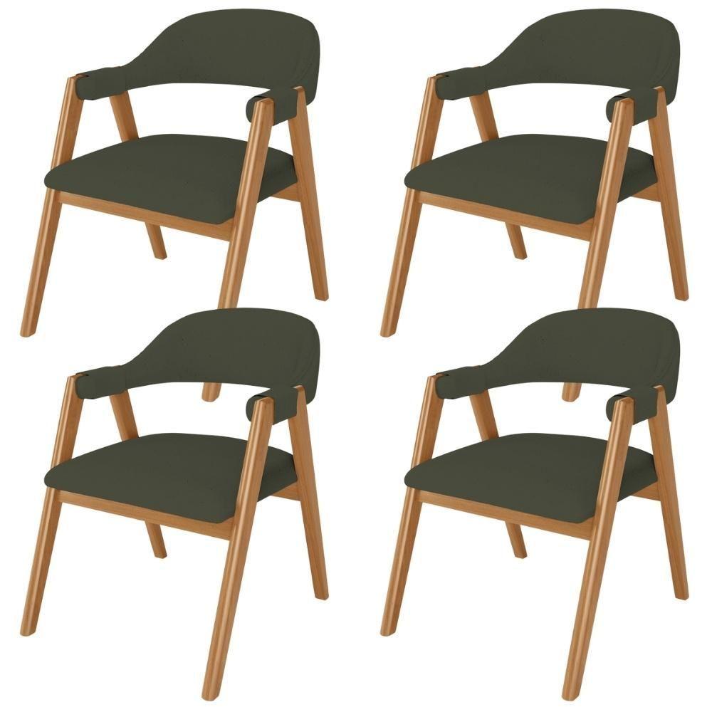 Kit 04 Cadeiras De Jantar E Estar Living Estofada Nadja L02 Linho Verde Musgo - Lyam Decor