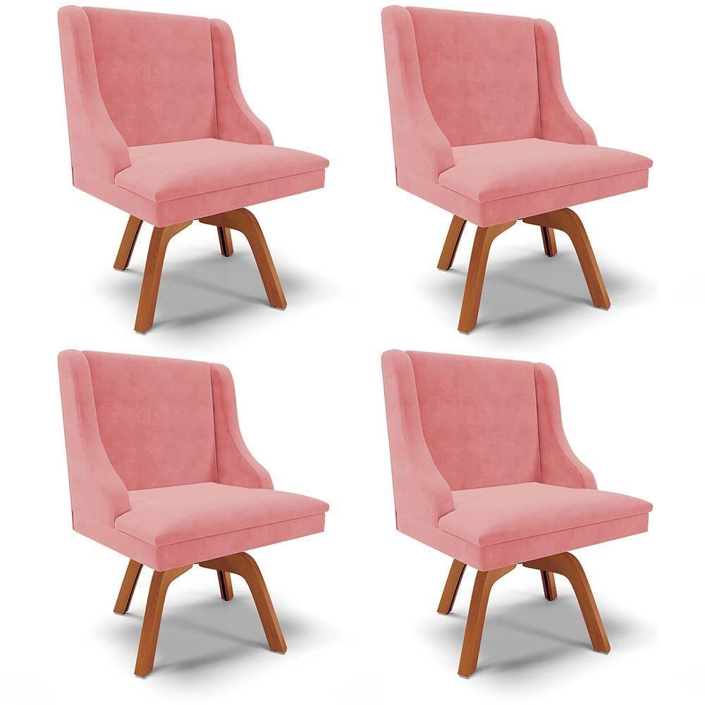 Kit 4 Cadeiras Estofadas Giratória Para Sala De Jantar Lia Suede Rosê - Ibiza