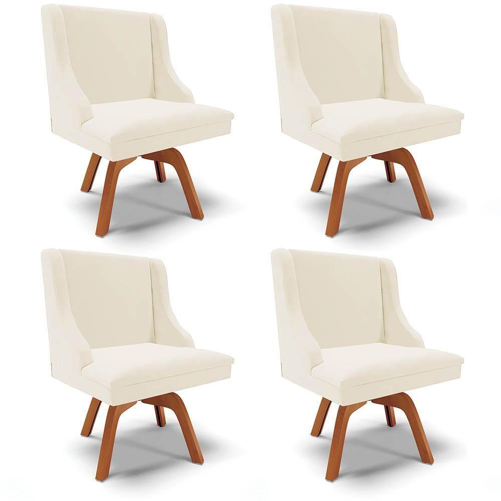 Kit 4 Cadeiras Estofadas Base Giratória De Madeira Lia Veludo Off White Luxo - Ibiza