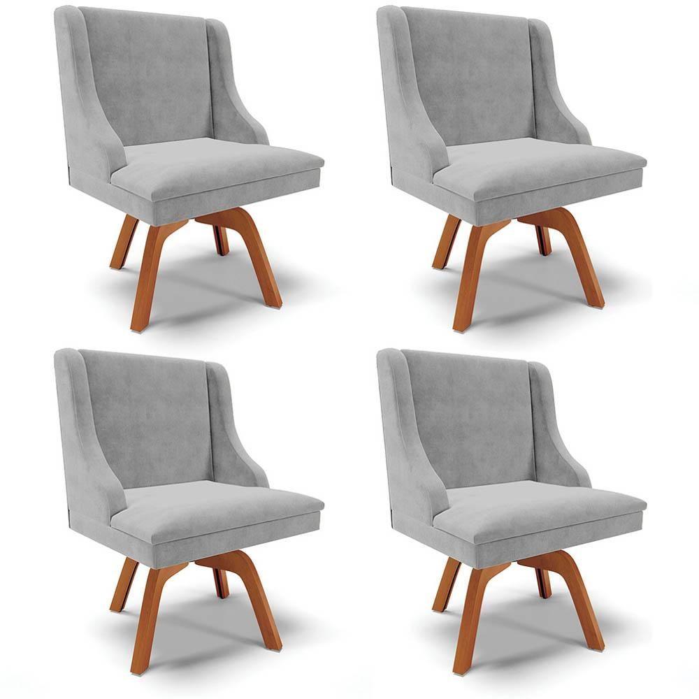 Kit 4 Cadeiras Estofadas Giratória Para Sala De Jantar Lia Suede Cinza - Ibiza