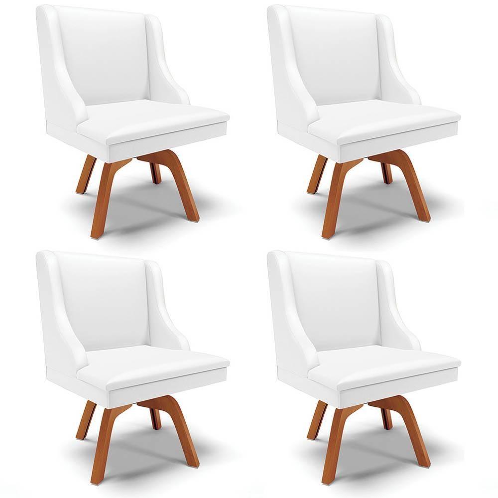 Kit 4 Cadeiras Estofadas Para Sala De Jantar Base Giratória De Madeira Lia Sintético Branco - Ibiza