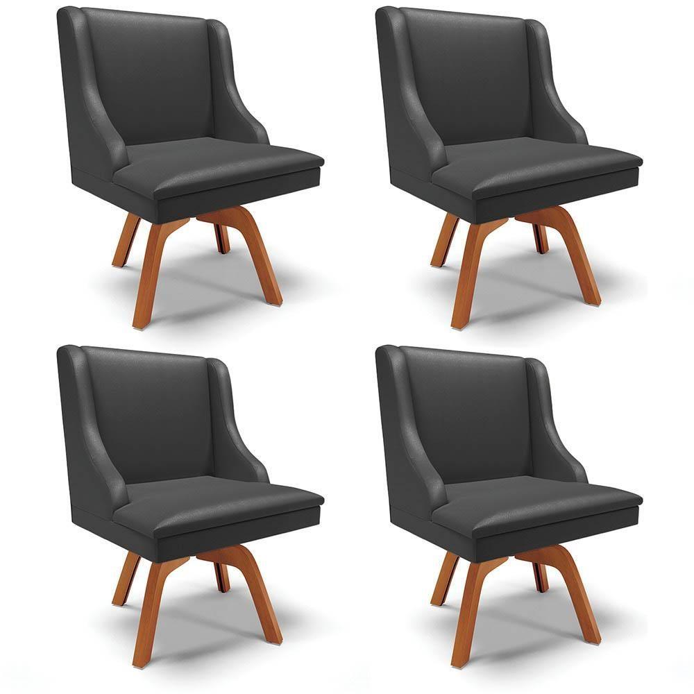 Kit 4 Cadeiras Estofadas Para Sala De Jantar Base Giratória De Madeira Lia Sintético Preto - Ibiza