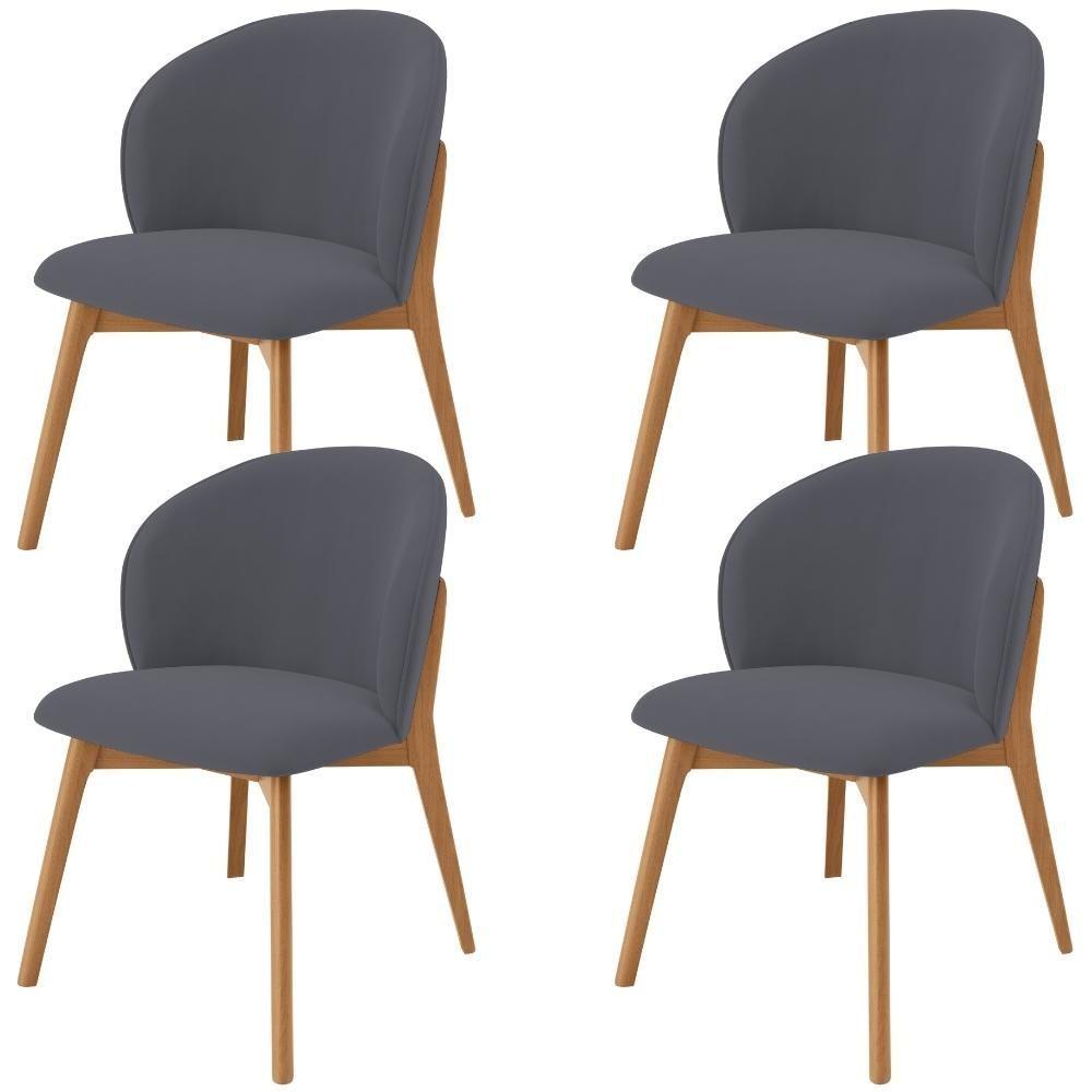 Kit 04 Cadeiras De Jantar E Estar Living Estofada Mia L02 Suede Cinza - Lyam Decor