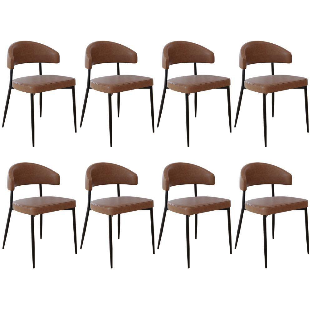 Kit 08 Cadeiras Estofada Para Sala De Jantar Serena Preto C01 Courino Whisky - Lyam Decor