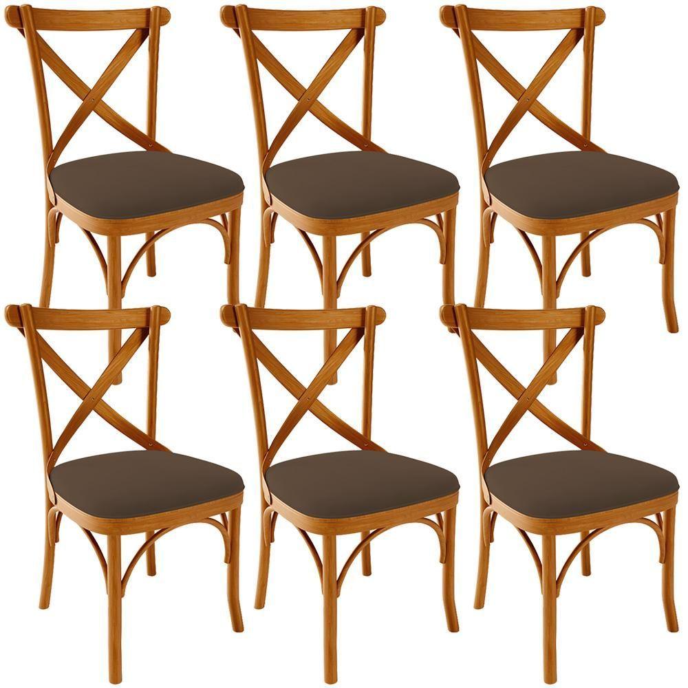 Kit 06 Cadeiras Para Sala De Jantar E Estar Living Estofada ávila L02 Couríssimo Marrom - Lyam