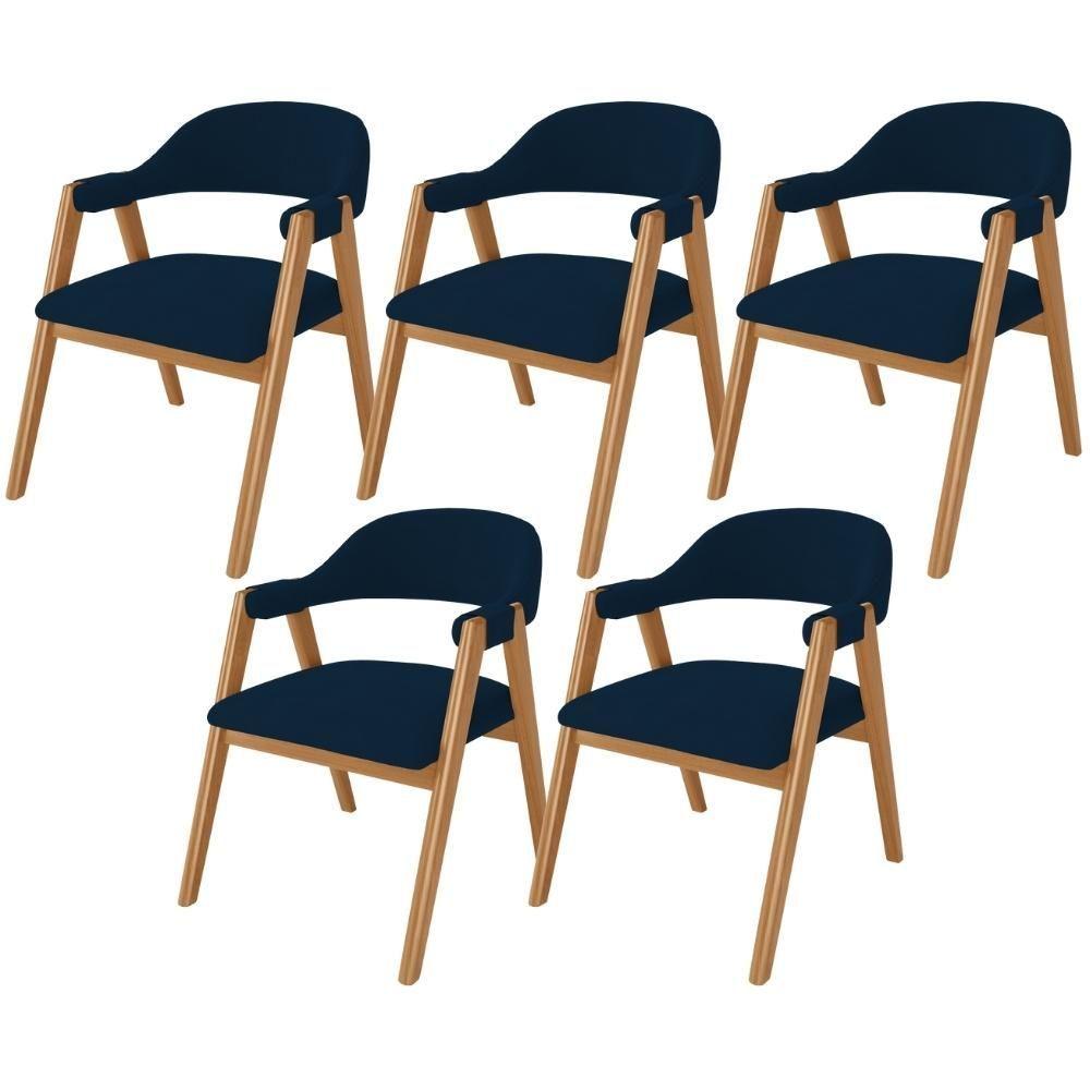 Kit 05 Cadeiras De Jantar E Estar Living Estofada Nadja L02 Suede Azul Marinho - Lyam Decor