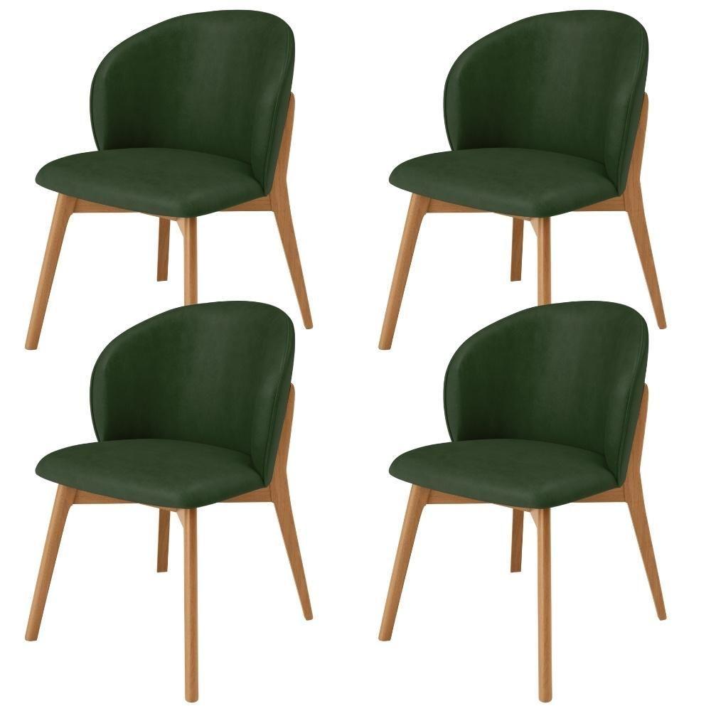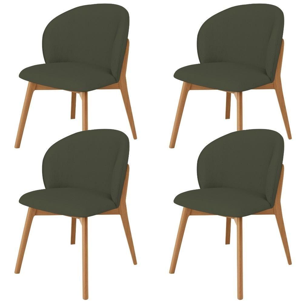 Kit 04 Cadeiras De Jantar E Estar Living Estofada Mia L02 Couríssimo Verde Musgo - Lyam Decor