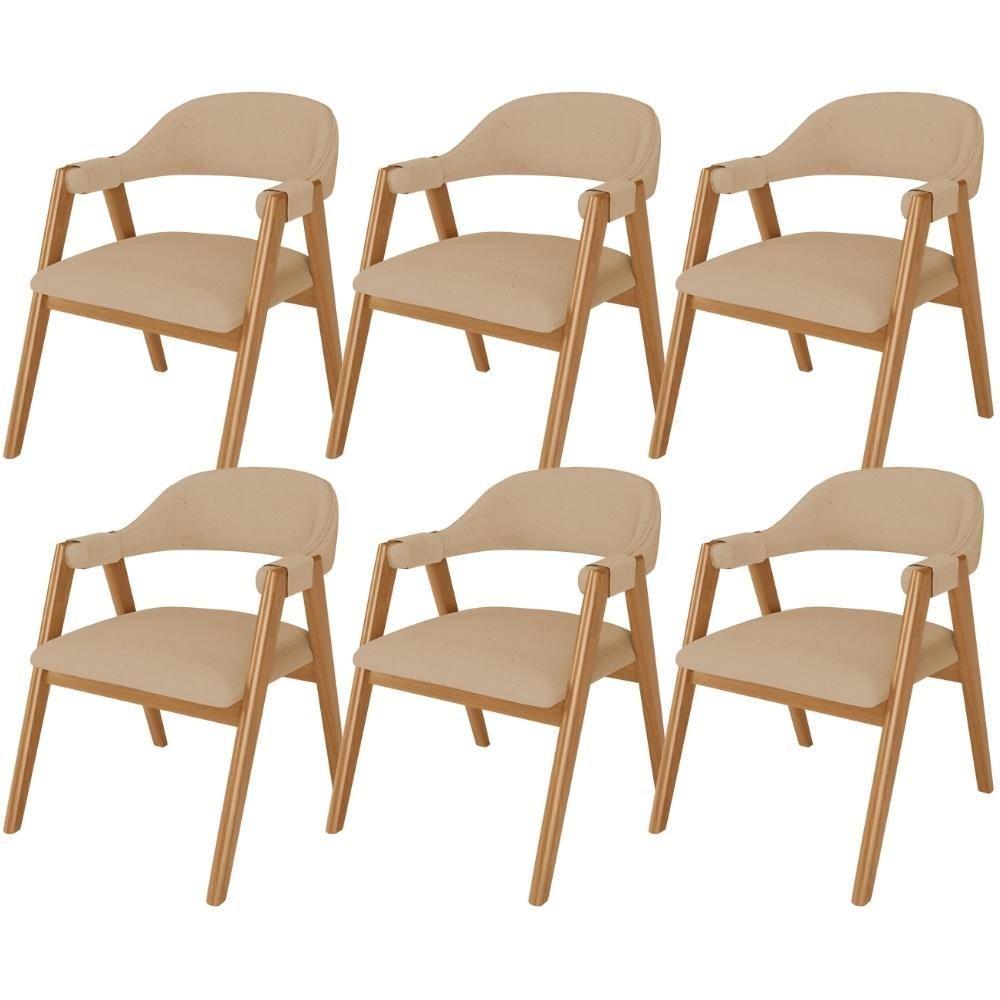 Kit 06 Cadeiras De Jantar E Estar Living Estofada Nadja L02 Linho Bege - Lyam Decor
