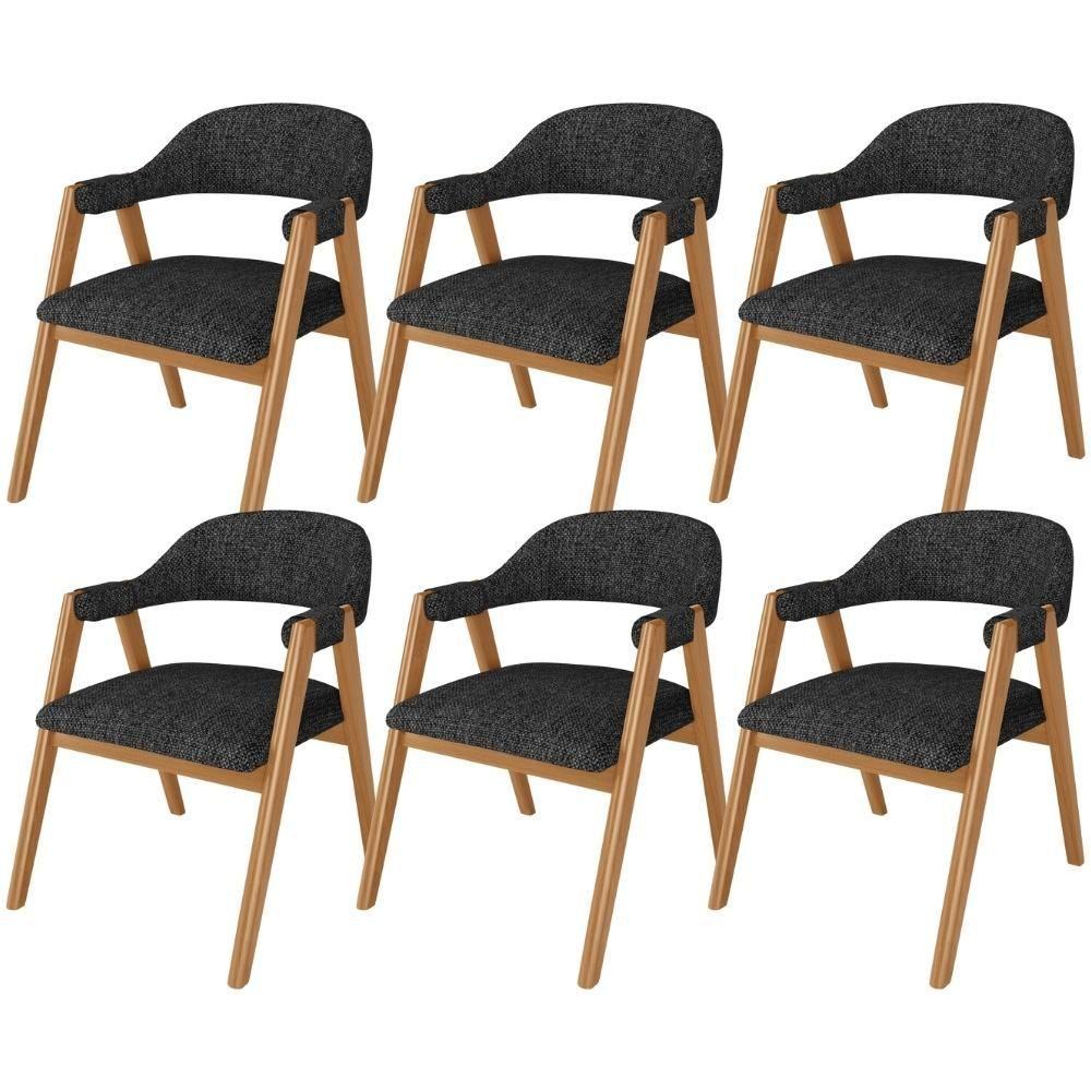 Kit 06 Cadeiras De Jantar E Estar Living Estofada Nadja L02 Linho Chumbo - Lyam Decor