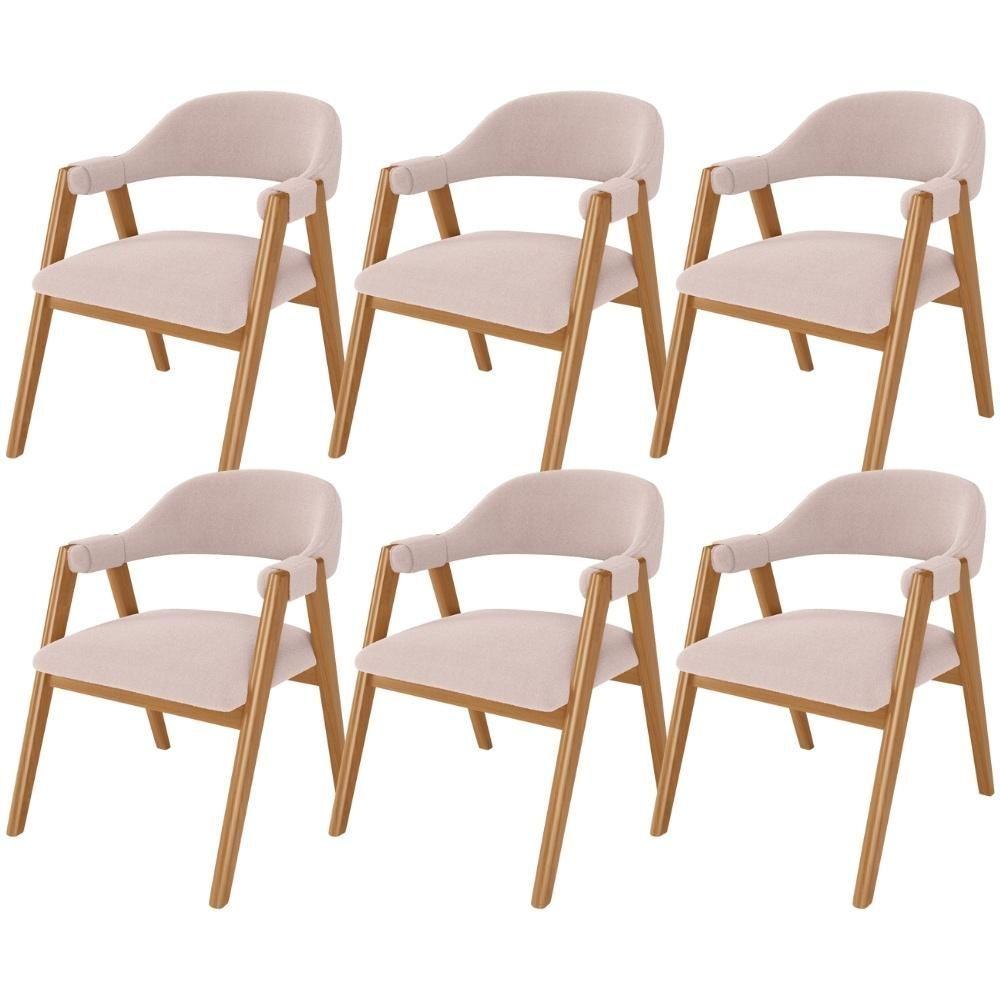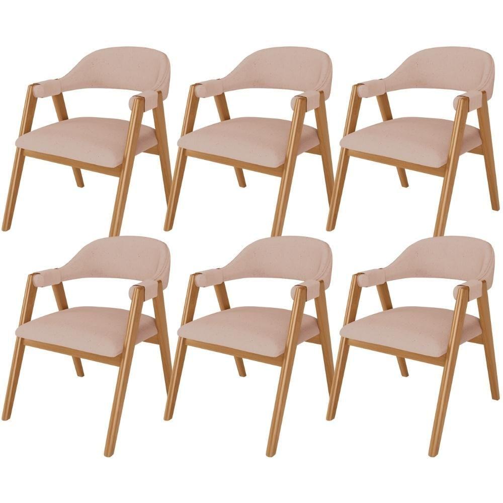 Kit 06 Cadeiras De Jantar E Estar Living Estofada Nadja L02 Linho Rosê - Lyam Decor