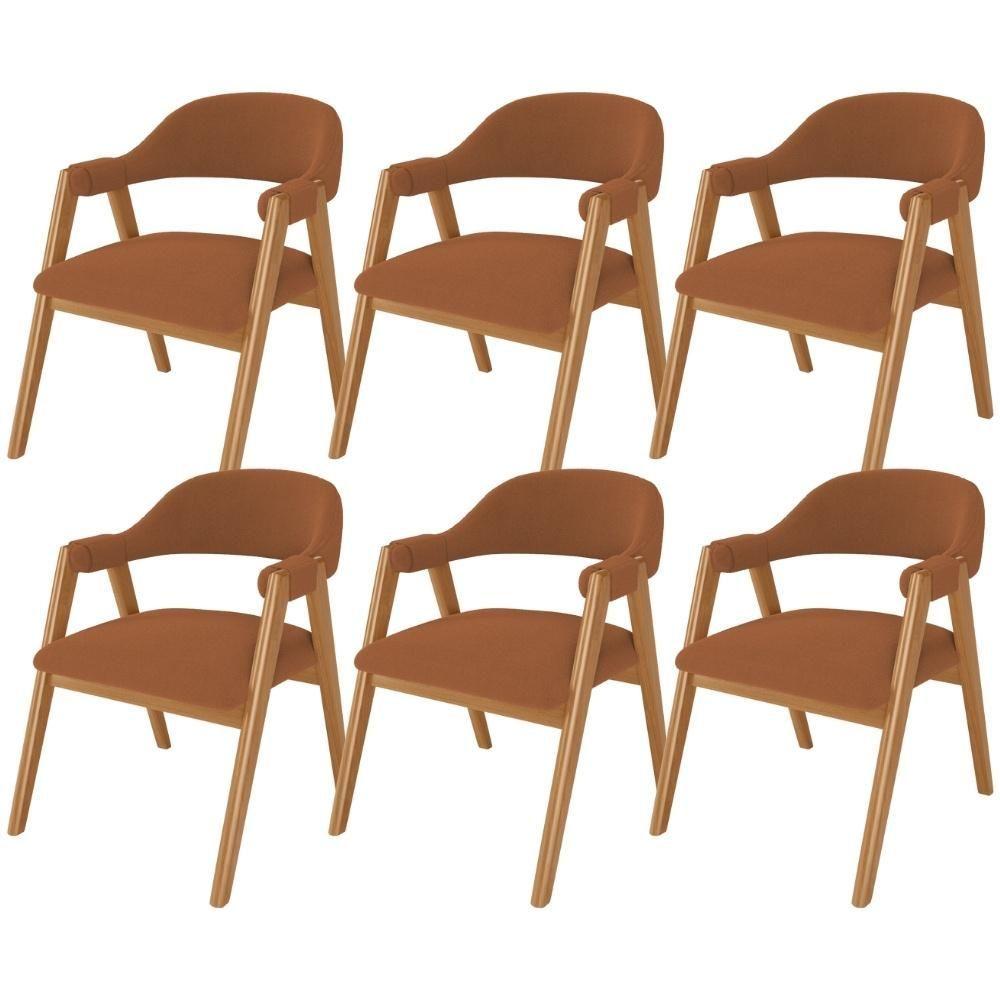 Kit 06 Cadeiras De Jantar E Estar Living Estofada Nadja L02 Bouclê Terracota - Lyam Decor