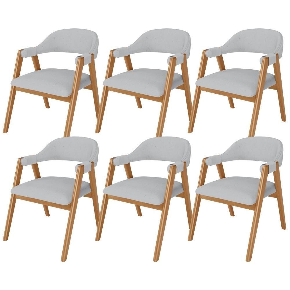 Kit 06 Cadeiras De Jantar E Estar Living Estofada Nadja L02 Linho Cinza - Lyam Decor