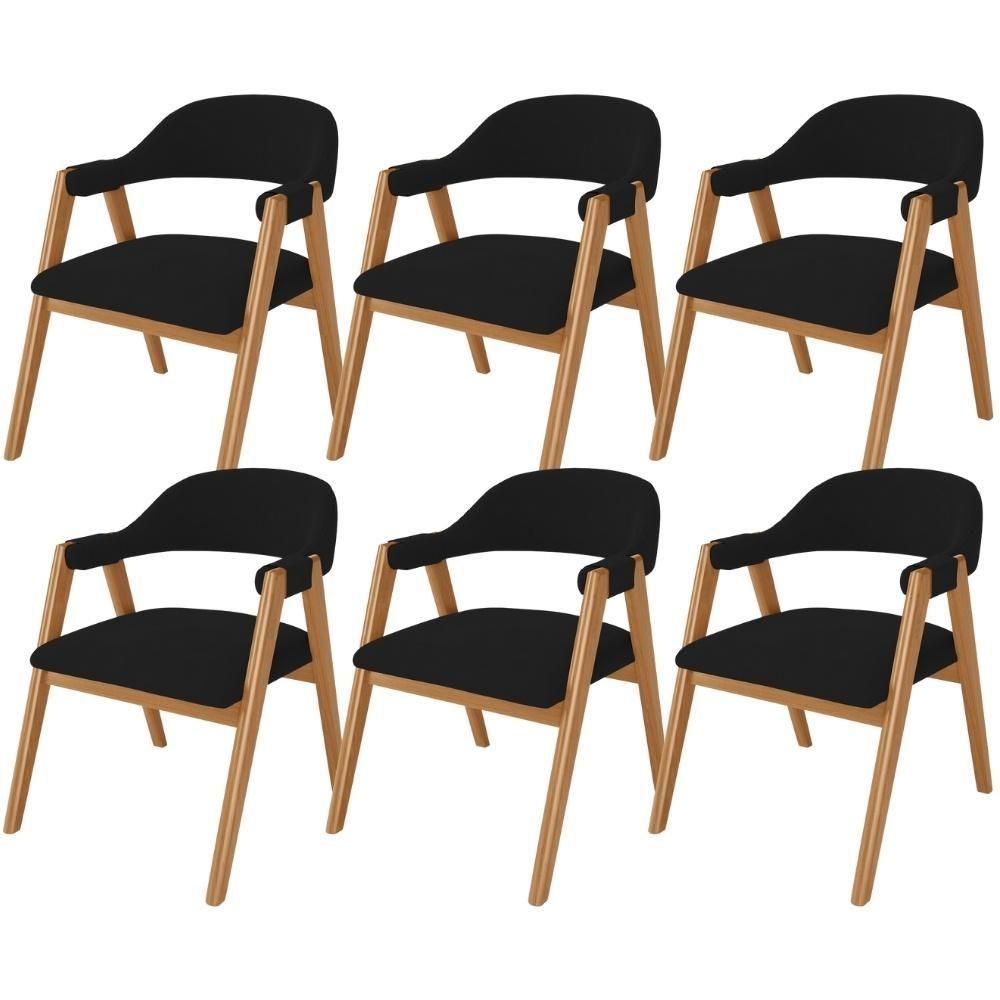Kit 06 Cadeiras De Jantar E Estar Living Estofada Nadja L02 Suede Preto - Lyam Decor