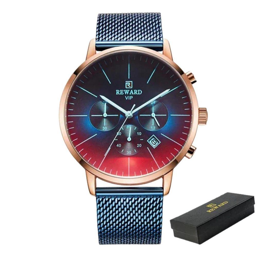 Relógio Marca Superior Luxo Malha Aço Inoxidável Quartzo Reward Azul