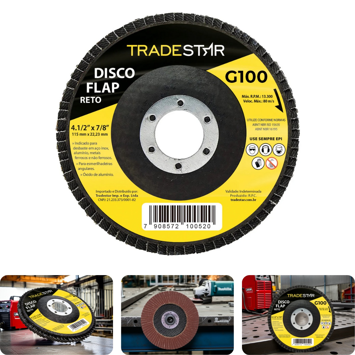 Disco Flap 115 mm G100 Fibra Reto Aço Tradestar