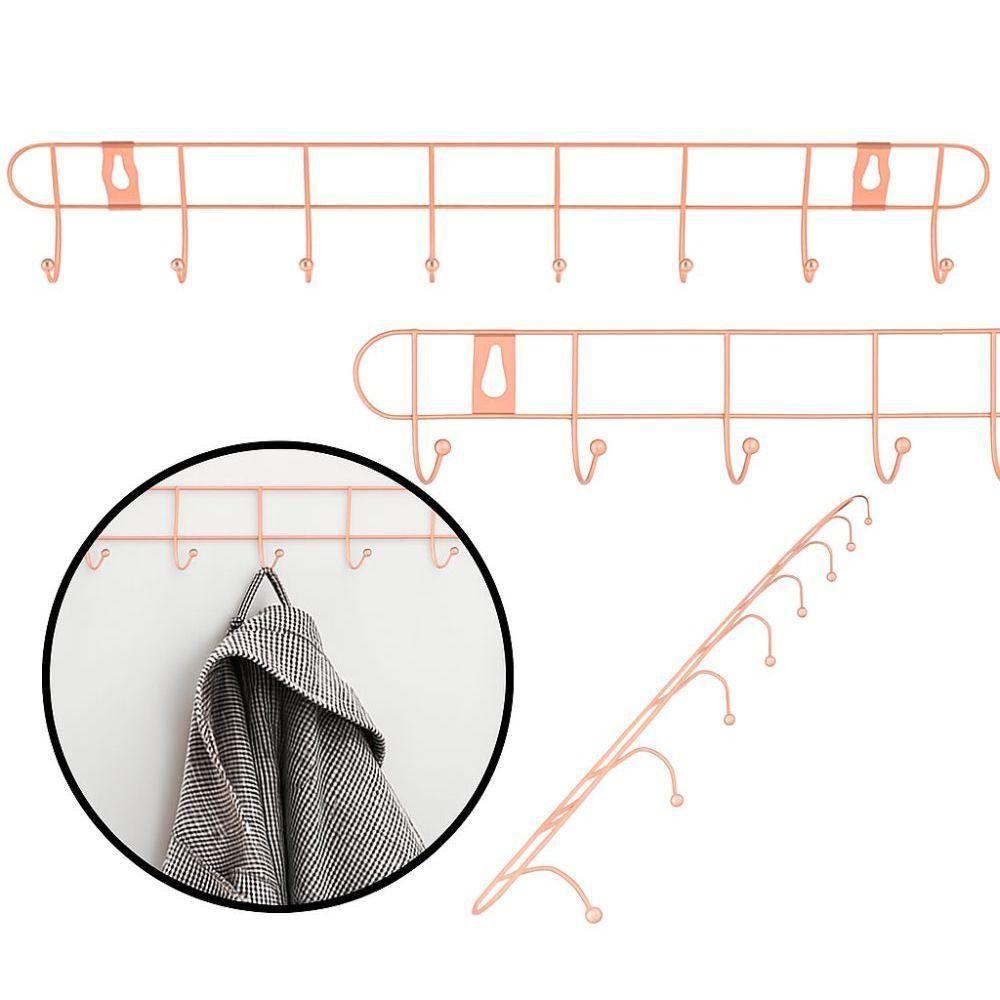 Cabideiro De Parede Rose Gold Suporte Aramado 8 Ganchos Organizador Guarda Roupas Toalhas Multiuso Utensilios Domesticos