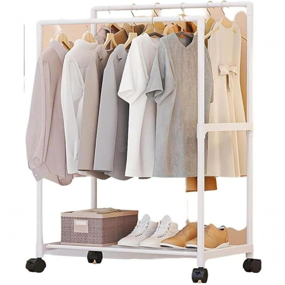 Arara Sapateira Organizadora Cabideiro Roupas Prateleira Com Rodas Branco