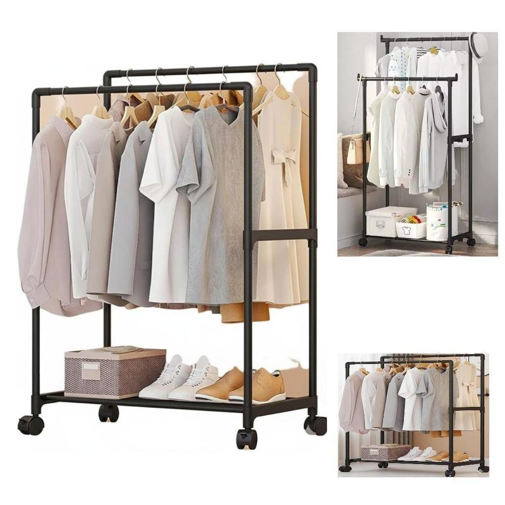 Cabideiro Arara Organizadora Sapateira Prateleira Roupas Preto Com Rodas