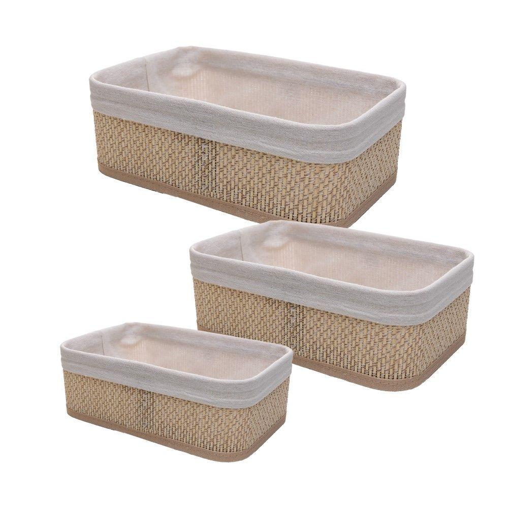 Conjunto 3 Cestos Retangulares De Bambu Com Forro Em Tecido Cozy Lyor