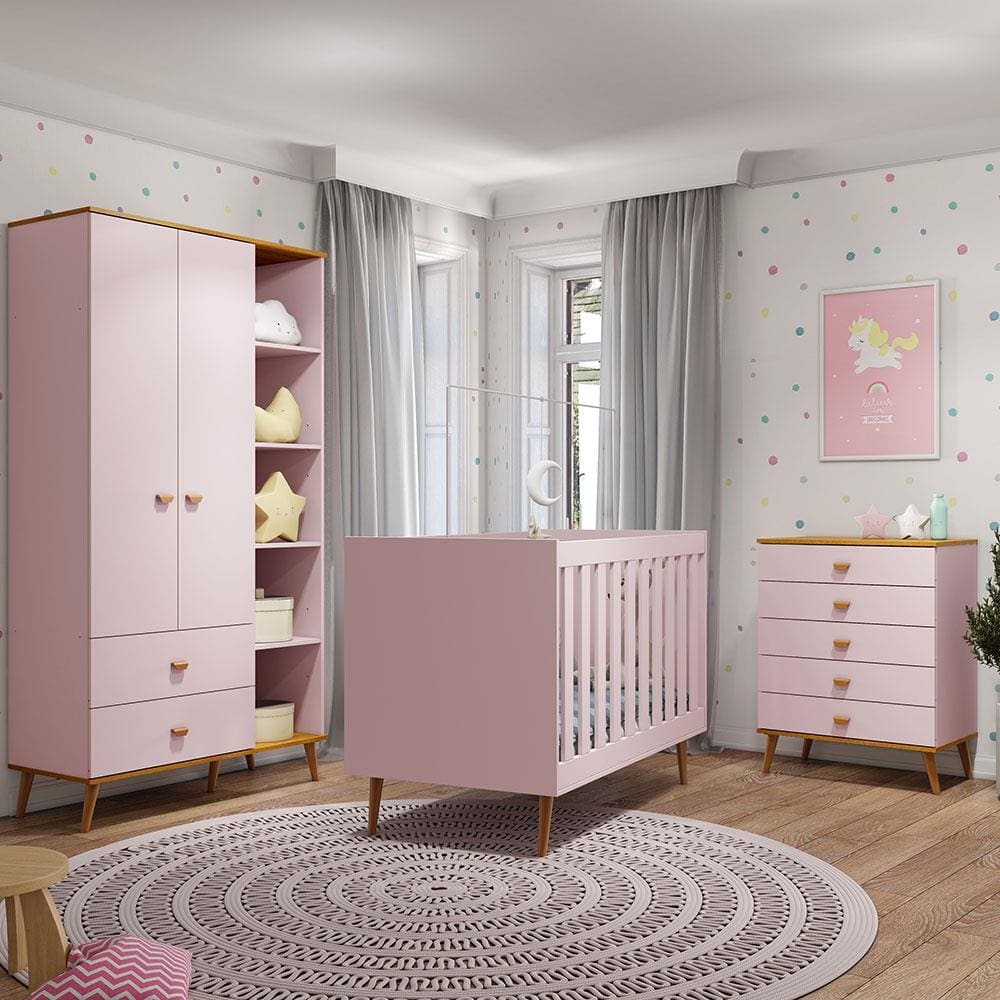 Quarto de Bebê Completo Carolina Baby com Berço Mini-Cama Mirelle Cômoda Eloá e Guarda-Roupa Eloá