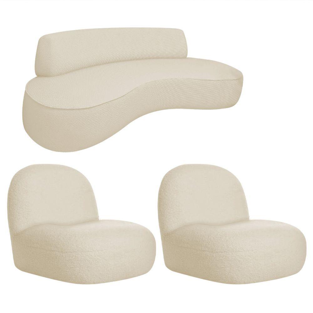 Sofá Curvo 140cm 2 Lugares E 2 Poltrona Amsterdã Linho - Adj Decor Cor Bege