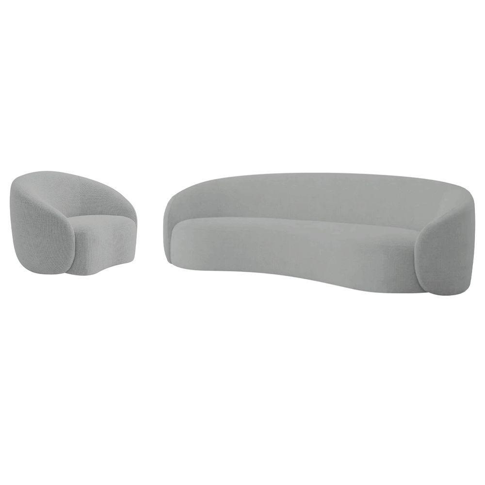 Kit Sofá 3 Lugares 200cm E Poltrona Orgânica Luxo Recepção Amore Bouclé Cinza