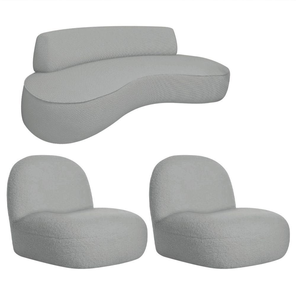 Sofá Curvo 180cm 3 Lugares E 2 Poltrona Amsterdã Bouclé - Adj Decor Cor Cinza