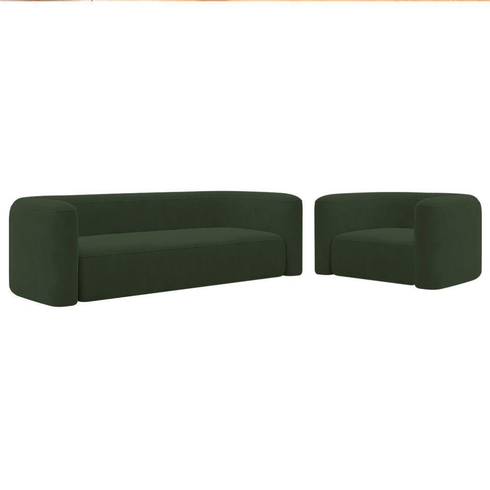 Kit Sofá 2 Lugares 160cm E Poltrona Orgânica Luxo Recepção Melina Linho Verde