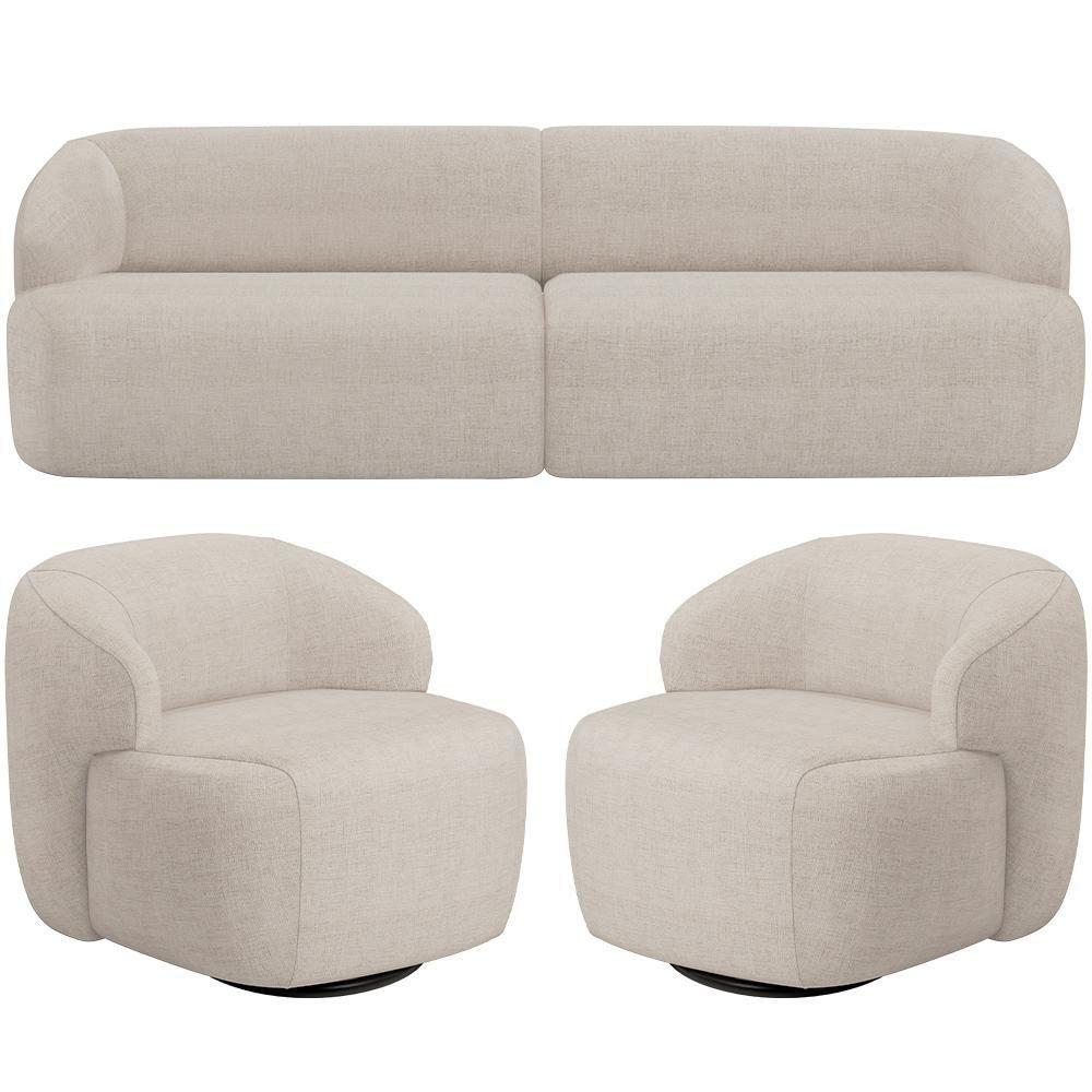 Sofá 3 Lugares Curvo Orgânico Com 02 Poltronas Living 250cm Barolo L06 Linho Bege