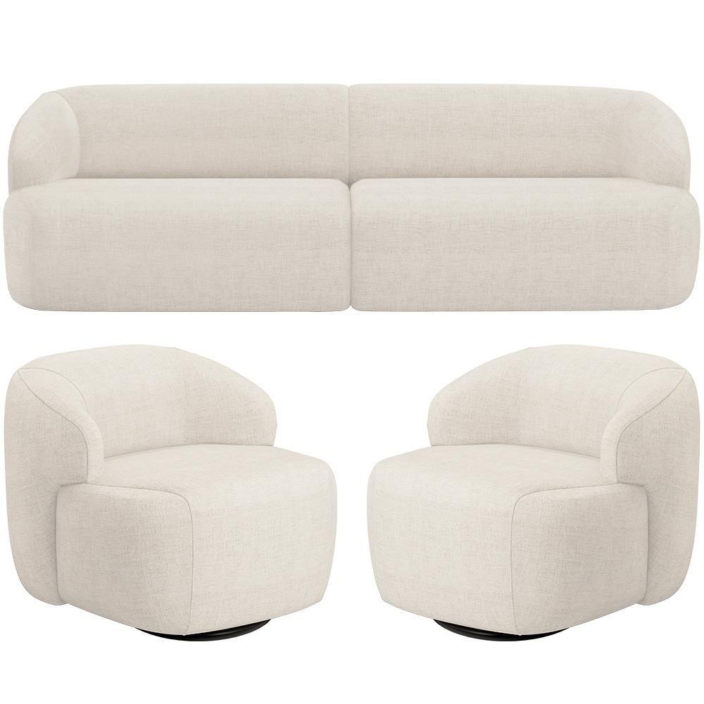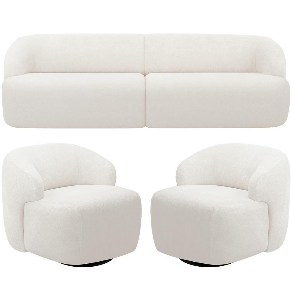 Sofá 4 Lugares Curvo Orgânico Com 02 Poltronas Living 280cm Barolo L06 Bouclê Branco