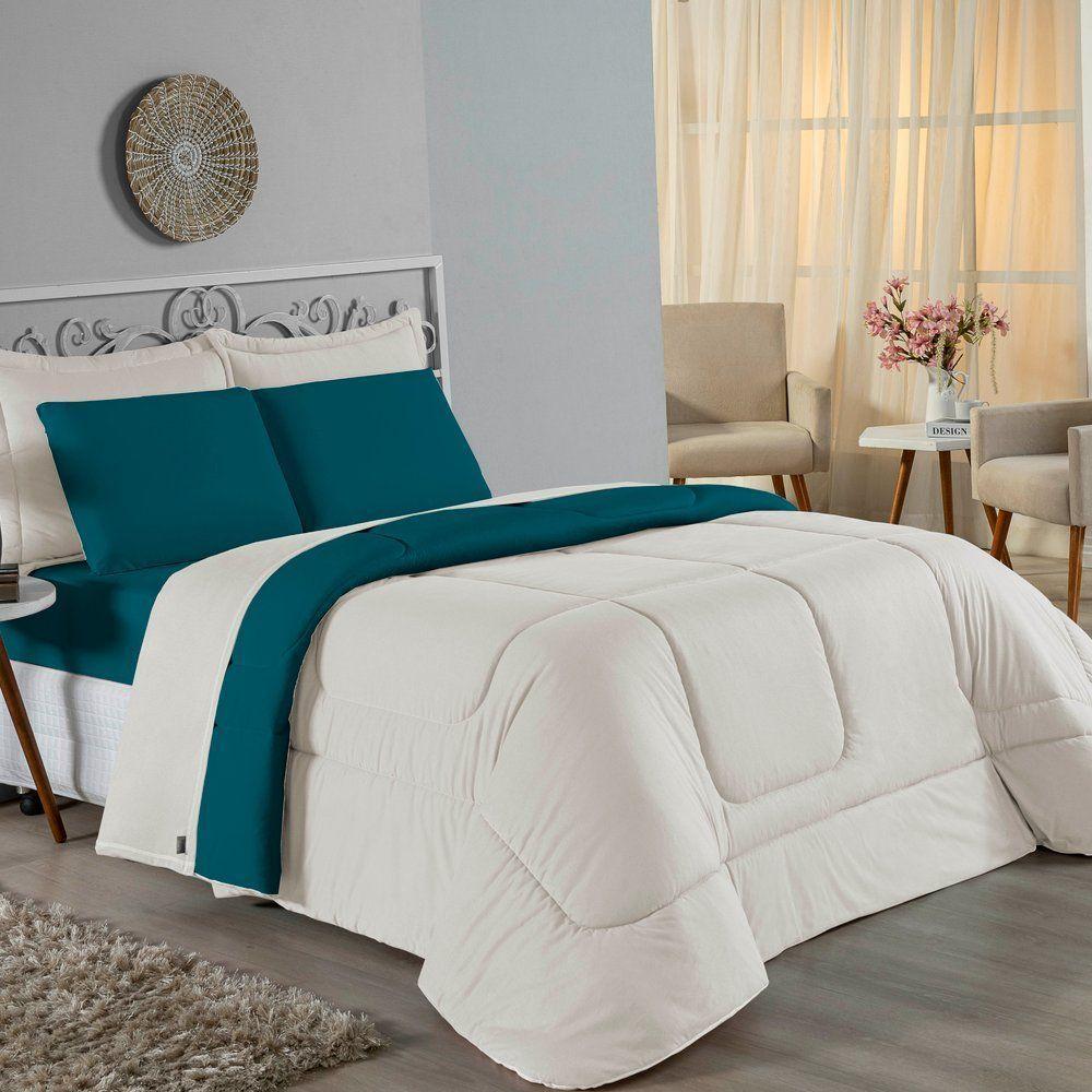 Edredom Casal Nobre 1 Peça Dupla Face 2,00m X 2,20m Malha 100% Algodão - Petróleo