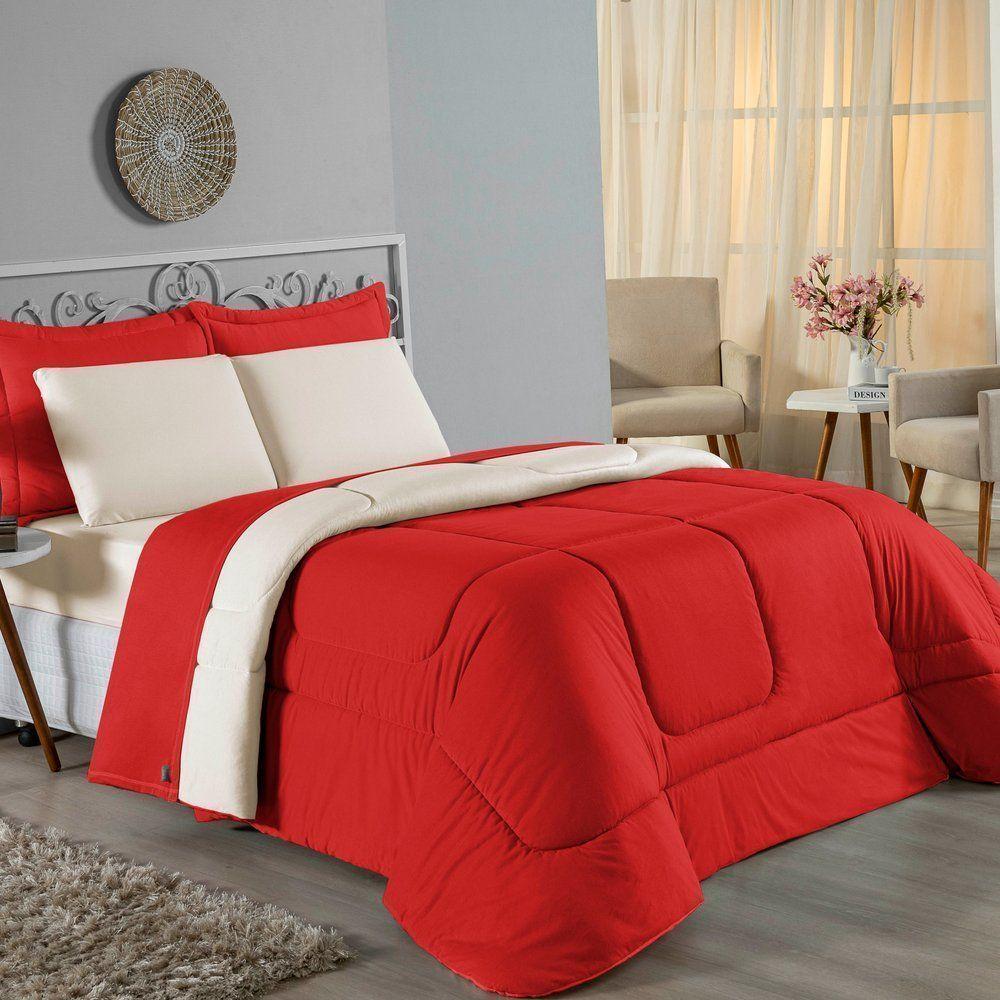 Kit Edredom Dupla Face + Jogo De Lençol Casal Nobre 7 Peças Malha 100% Algodão - Vermelho / Preto