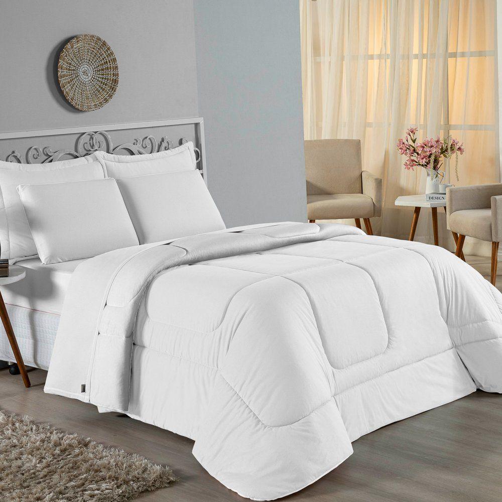 Kit Edredom Dupla Face + Jogo De Lençol Casal Nobre 7 Peças Malha 100% Algodão - Branco