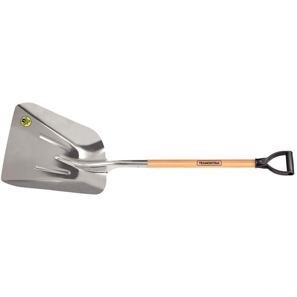 Pá Carvoeira Alumínio Cabo De Madeira 71 Cm Empunhadura Plástica Reta Ergonômica