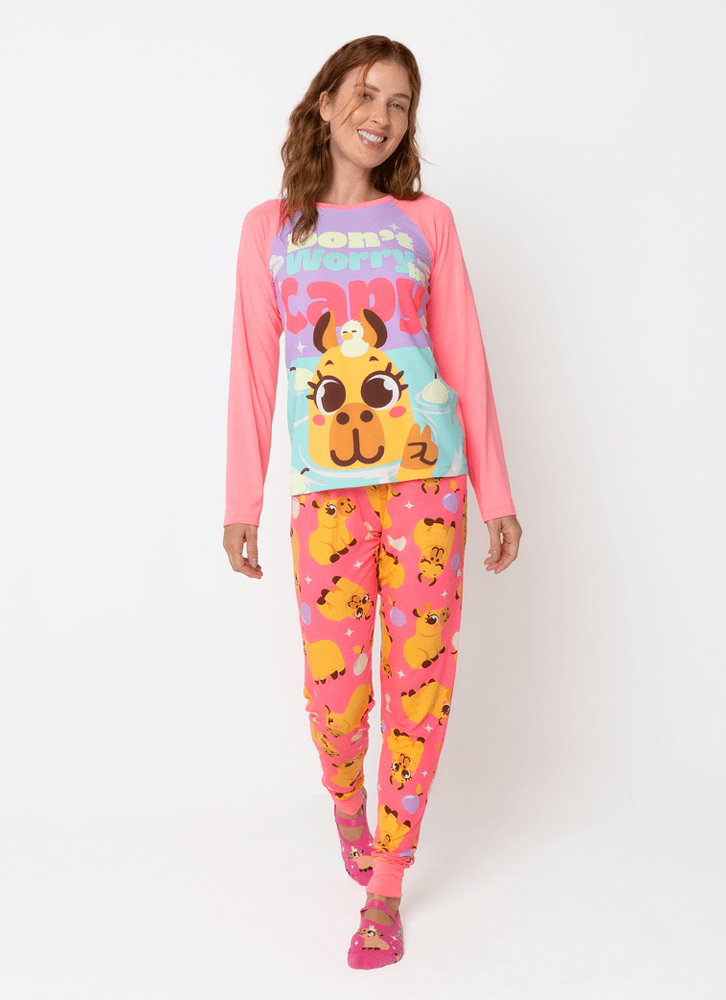 Pijama Manga Longa Viscolycra Feminino Capivara Vibes