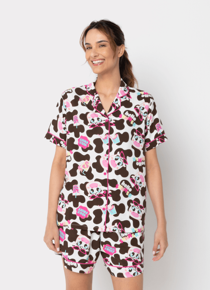 Pijama Manga Curta Viscose Feminino Vaca Summer