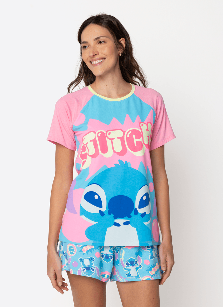 Pijama Manga Curta Viscolycra Feminino Stitch