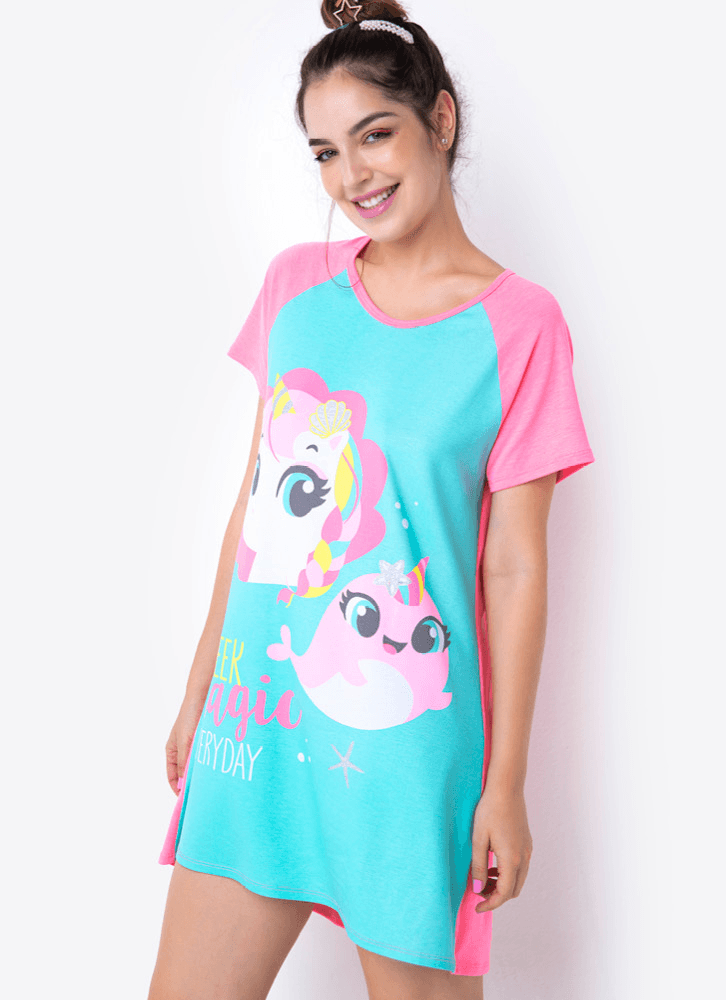 Camisola Manga Curta Algodão Feminina Unicórnio Tênis