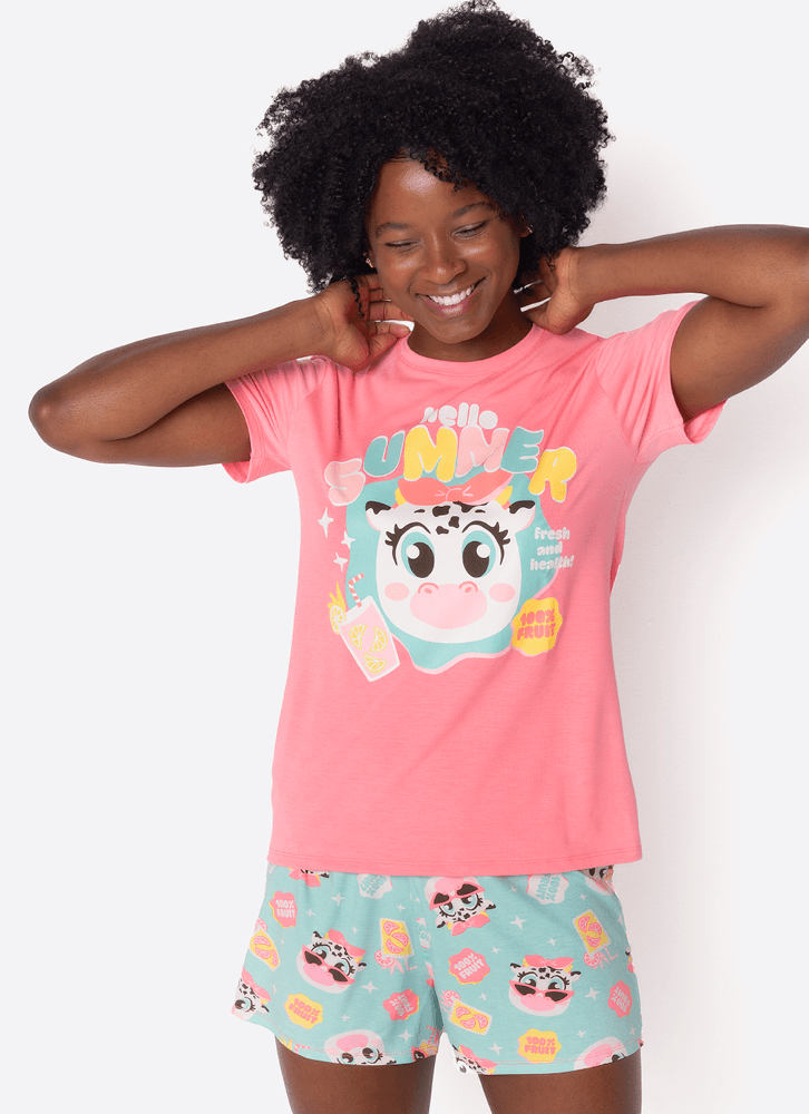 Pijama Manga Curta Viscolycra Feminino Vaca Summer