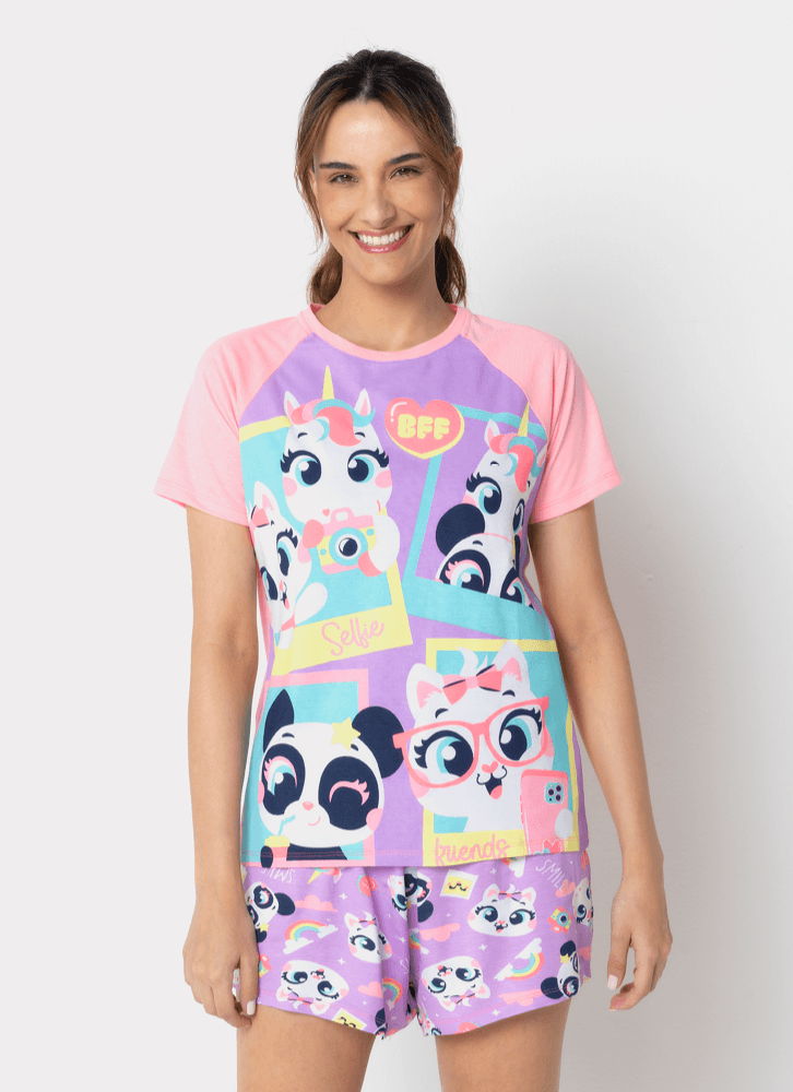 Pijama Manga Curta Viscolycra Feminino Multibichos