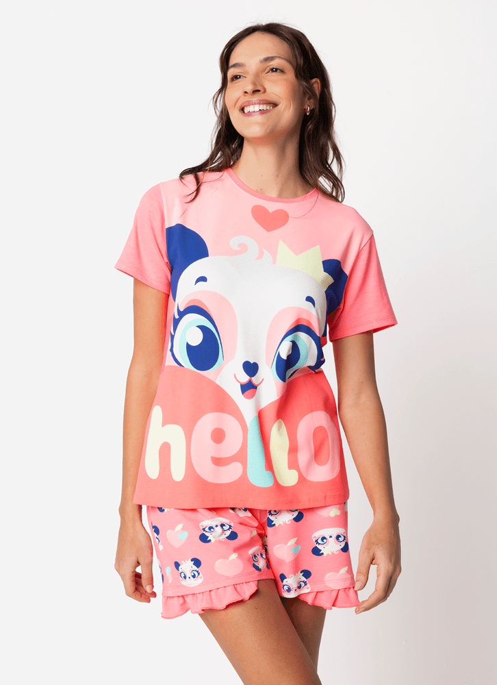 Pijama Manga Curta Viscolycra Feminino Panda Romântico