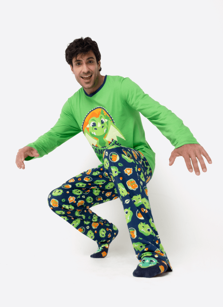 Pijama Manga Longa Algodão Masculino Dragão Camping