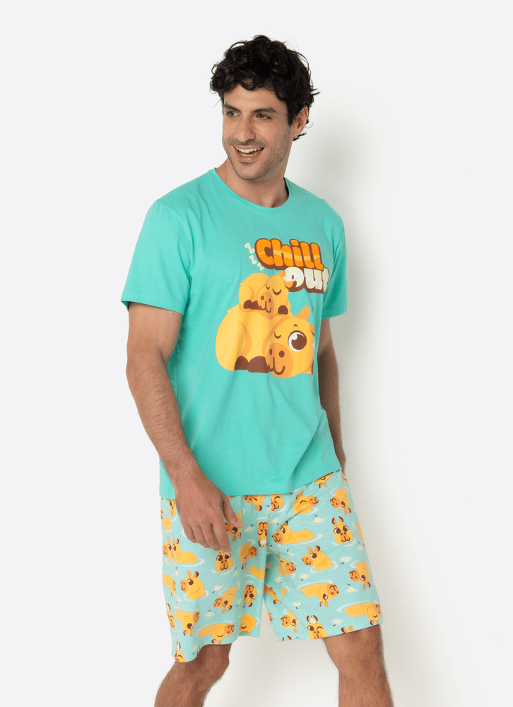 Pijama Manga Curta Algodão Masculino Capivara Vibes