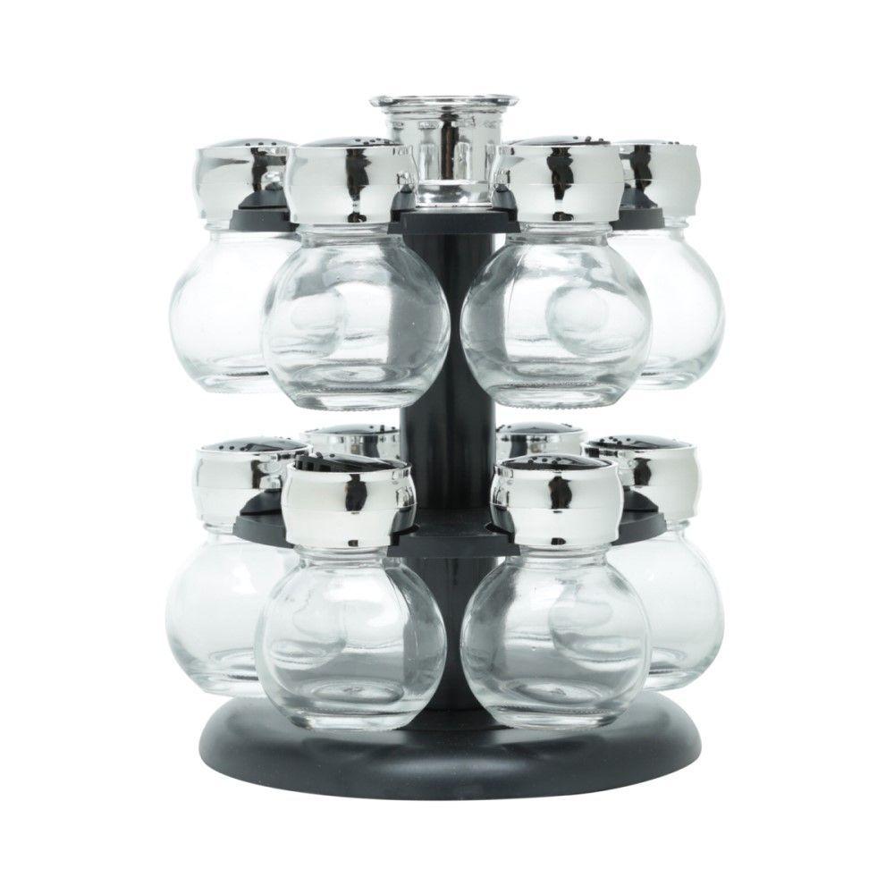 Conjunto Porta Temperos 13 Peças Em Vidro Com Tampa Plástica E Base Giratória Poli Preta Wolff