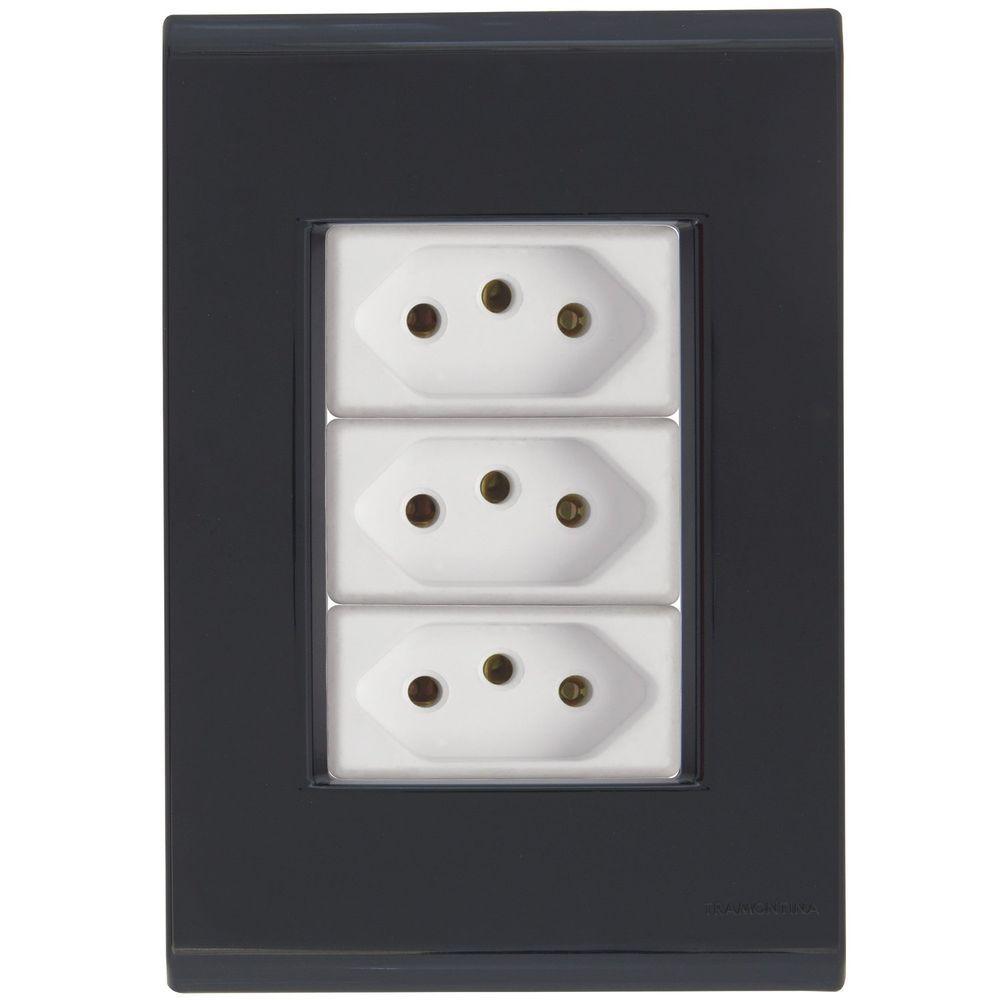 Cj Três Tomadas Tripla 10a Liz Grafite Tramontina Completo Pronto Tramontina